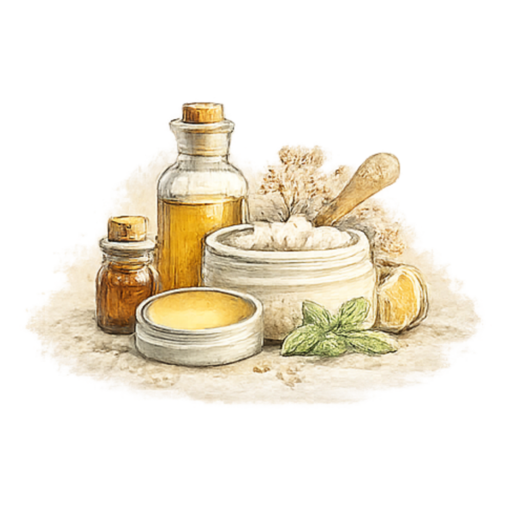 Unsere Produkte verbinden die Kraft der Natur mit sorgfältiger Handarbeit. Neben unserem bestehenden Sortiment fertigen wir auch maßgeschneiderte Pflegeprodukte –